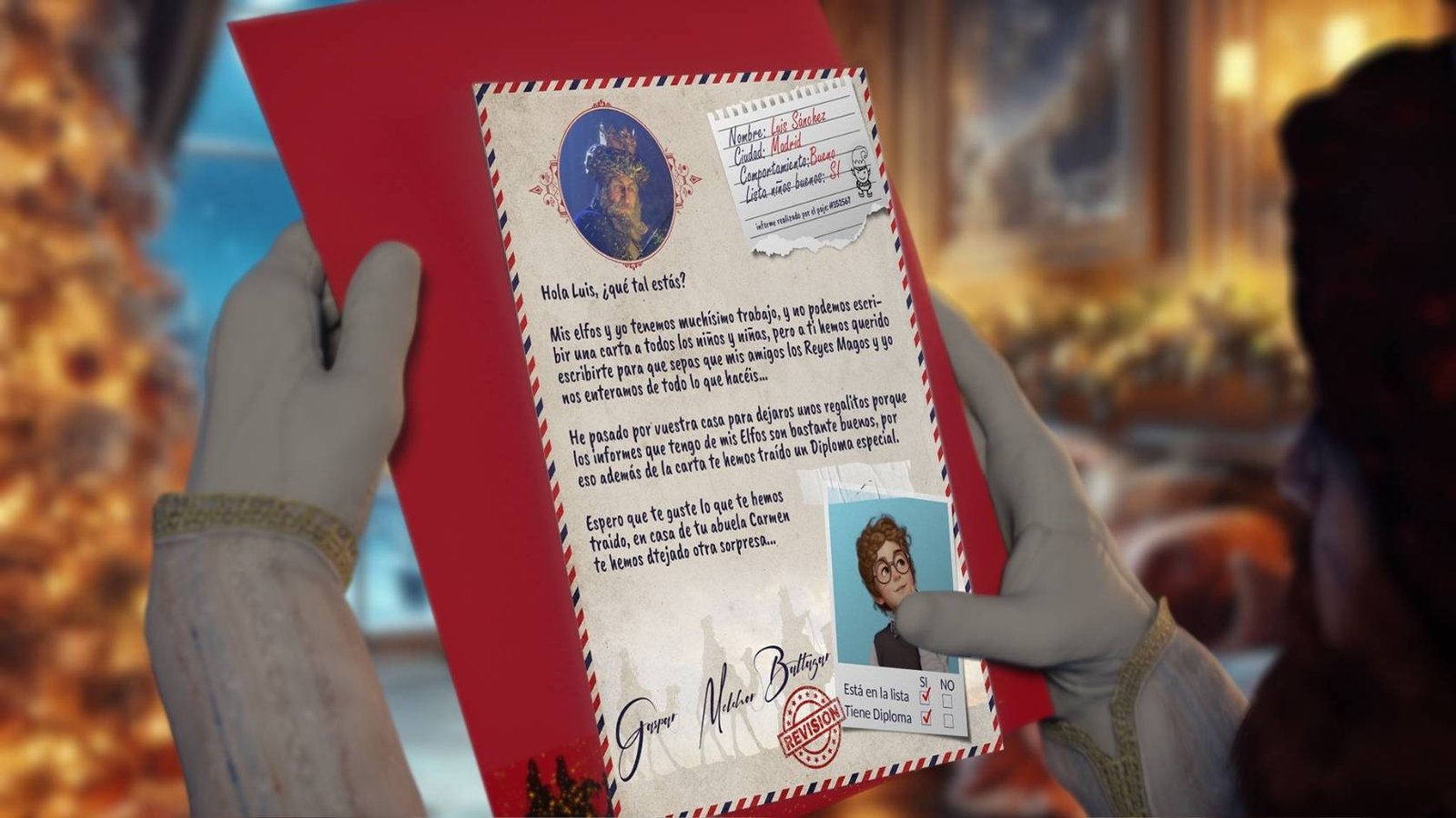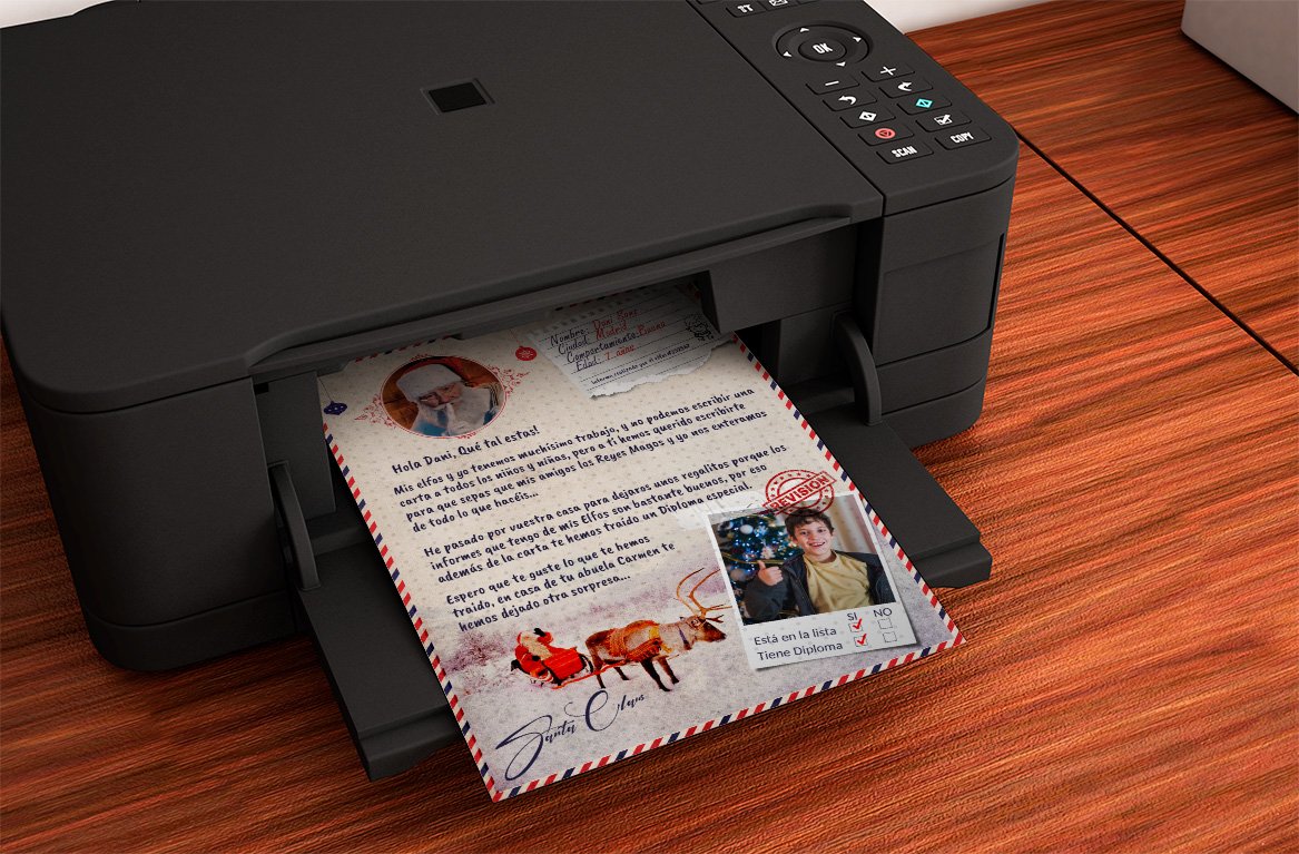 El diseño de la carta es muy original, el fondo imita al papel antiguo, está escrita imitando la letra manuscrita, todo el contenido de la carta es personalizable, lleva incluída una foto del pequeño con sus datos personales y un informe sobre su comportamiento. La carta incluye un sobre también personalizado con los datos del niño. Te enviaremos la carta en formato PDF para que sólo tengas que imprimirla en casa y el sobre listo para imprimir y recortar.